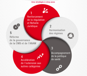 C’est, en substance, l’objet de sa nouvelle stratégie qui s’articule autour des cinq axes stratégiques à savoir, l’accompagnement des réformes de santé, l’harmonisation des régimes, l’accélération de l’extension aux autres Régimes, la réforme de la gouvernance de la CMB et de l’ANAM et la refonte du cadre juridique et réglementaire.