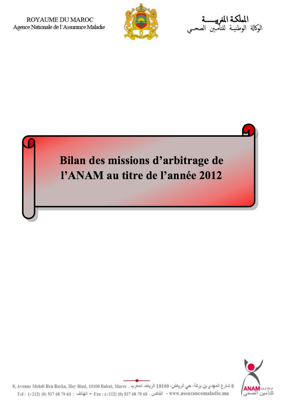 Bilan des missions d’arbitrage de l’ANAM au titre de l’année 2012
